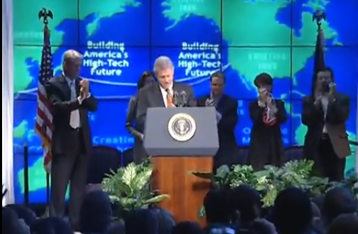 At a WorldCom conference on March 1, 2000, U.S. President Bill Clinton remarked that the company was his vision of the future. "So I say to you, I came here today because you [World-Com] are the symbol of 21st century America. You are the embodiment of what I want for the future. And because of what you do for a living every day, because of how you see and feel the way the world is changing, and how you see what it can become, you are in a position that most of your fellow Americans are not in to understand the importance of this." Unfortunately, WorldCom's "success" was based on the greatest corporate accounting fraud in U.S. history prior to the global economic collapse of 2008. It is estimated that the company exaggerated their profits by about $11 billion. When this information went public, WorldCom's stock price collapsed, and the company eventually filed for bankruptcy. The disaster at WorldCom was unfortunately just a part of the wholesale collapse of the "dot com" stock boom in the years after Clinton's speech. Indeed, Clinton's speech marked the peak of the speculative bubble. In this same speech Clinton also hailed the "benefits" of his "trade" policies with China, a dictatorship that has murdered 80 million of its own citizens. Today, the losses from that policy have reached trillions of dollars and millions of U.S. jobs. One person who probably won't be reading this report is Bernie Ebbers, the former CEO of WorldCom who introduced Clinton to the eager crowds of Worldcom employees. Today, Mr Ebbers is in a federal prison with restricted access to the internet. We're not so sure he would agree with Clinton's statement here that "We live in a time when really doing the morally right thing happens to be good economics." However, he's serving a 25 year sentence so he'll have lots of time to think about the matter. You can see Mr. Ebbers on the left in the picture below, as his company is endorsed by President Clinton before it collapsed in disgrace.
